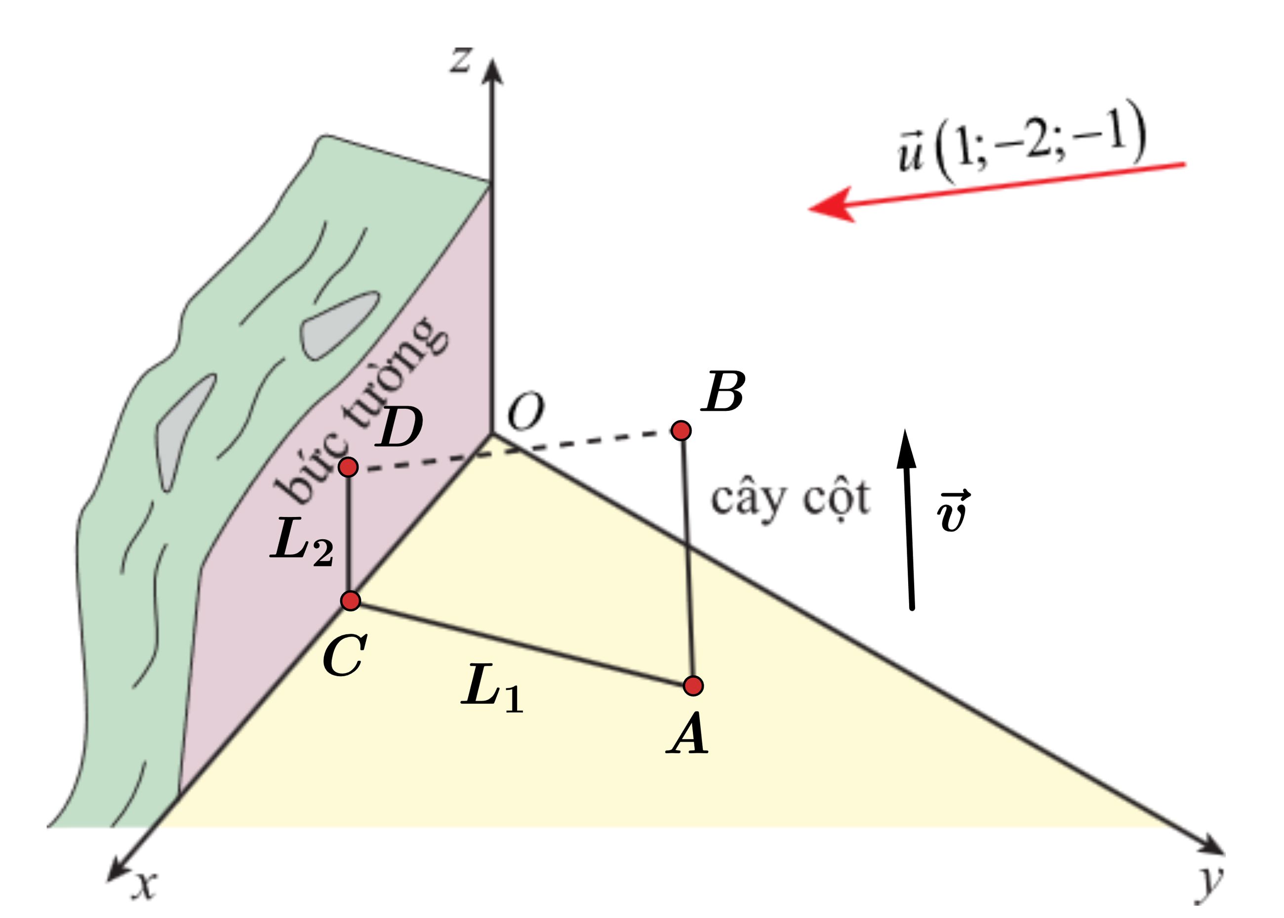 một cây cột thẳng cao 9 mét được đặt nghiêng so với mặt đất tại điểm