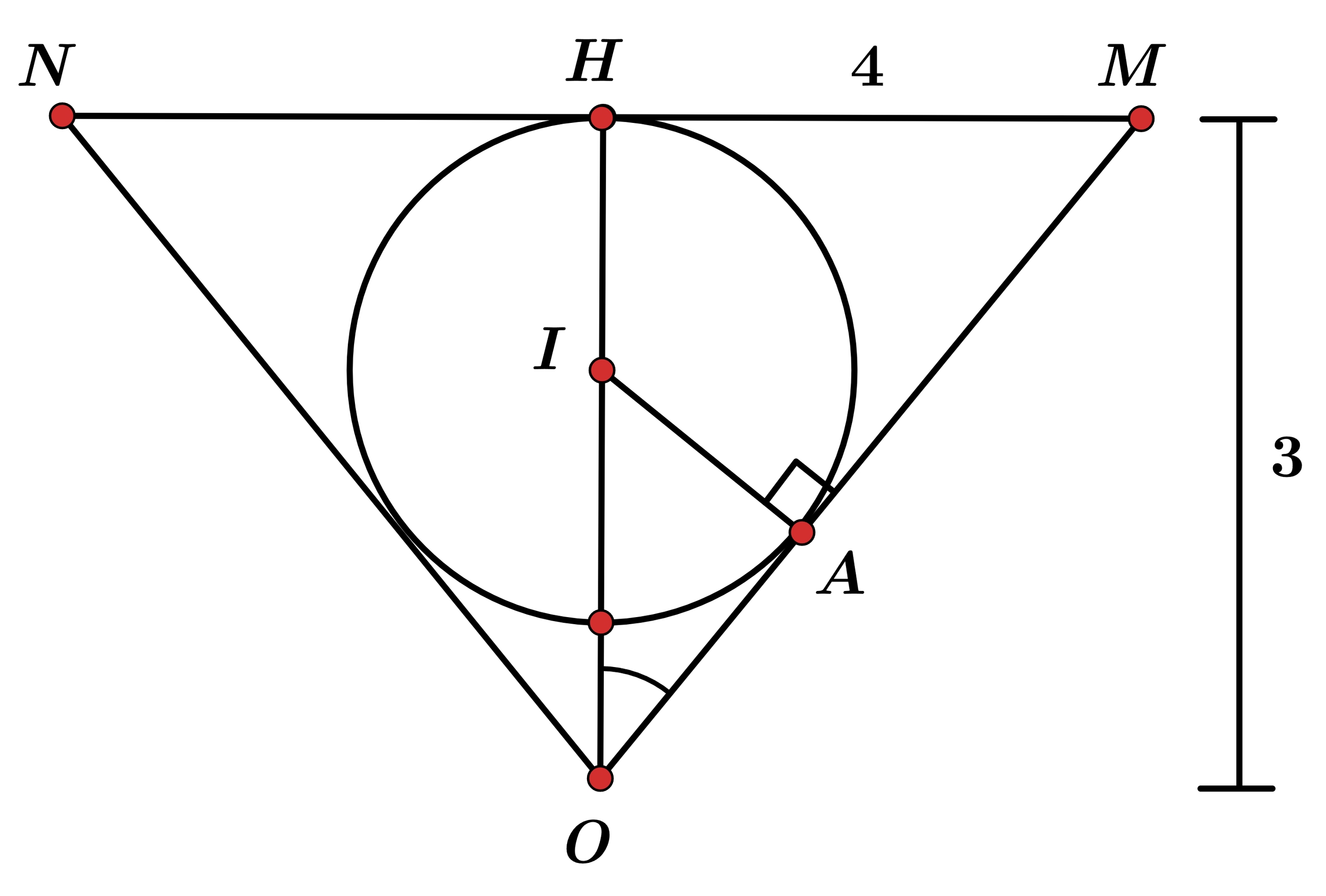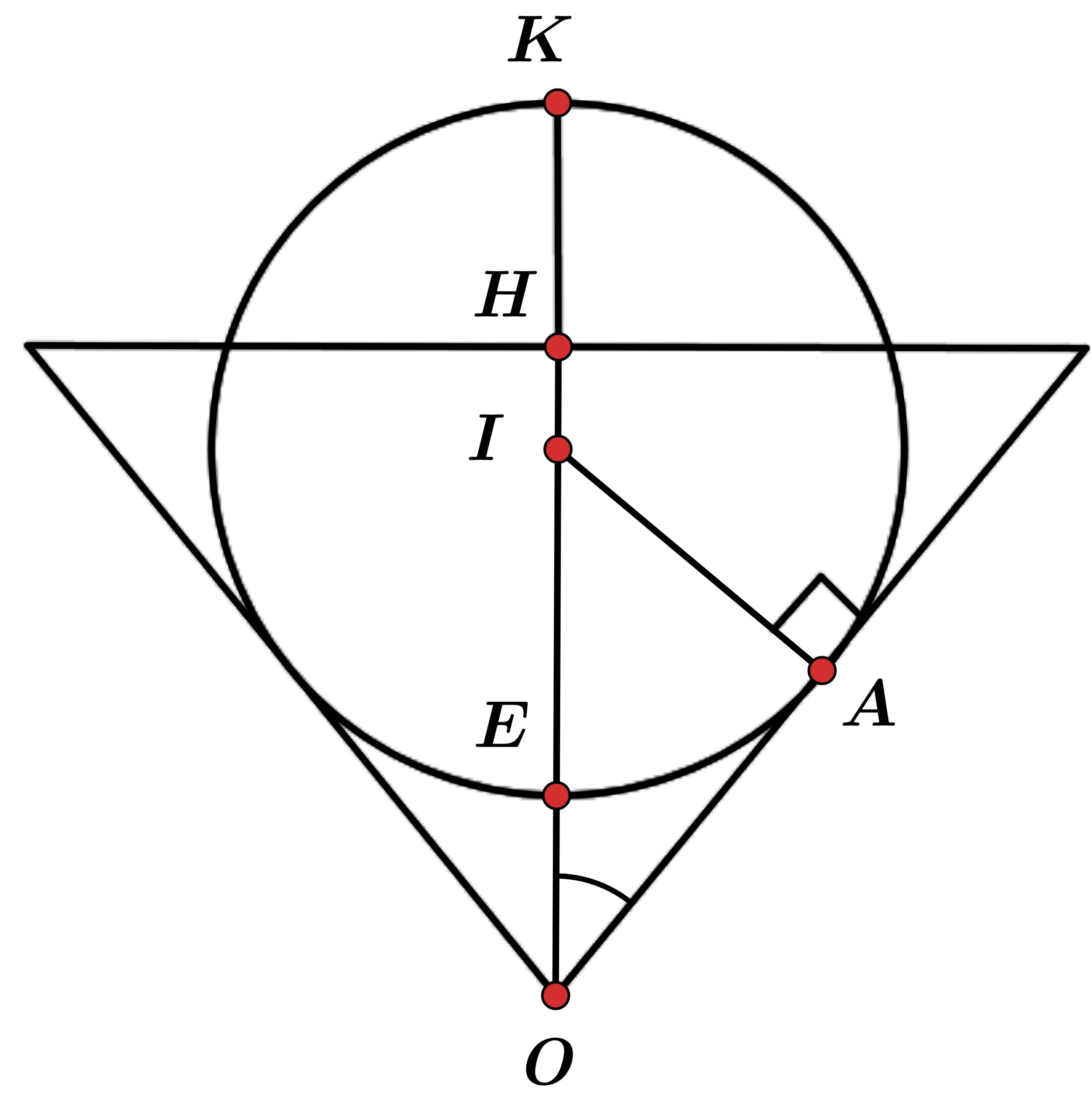 Khi đó thể tích quả cầu lớn nhất khi quả cầu tiếp xúc với mặt nước. Kí hiệu các điểm như hình vẽ,