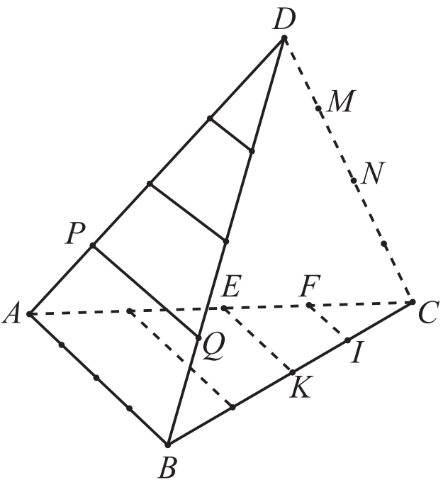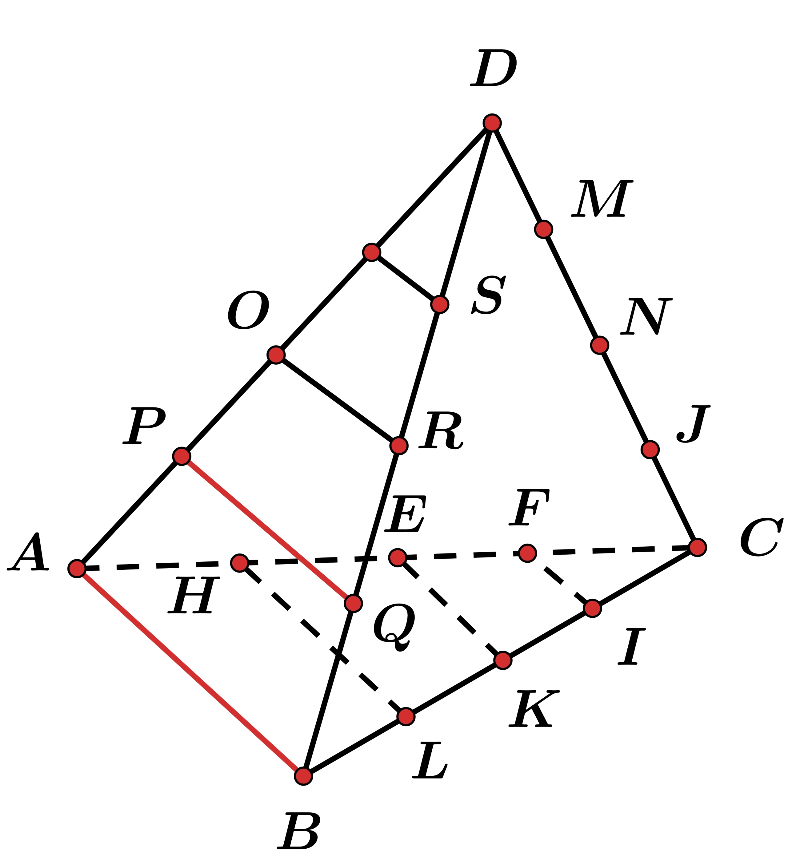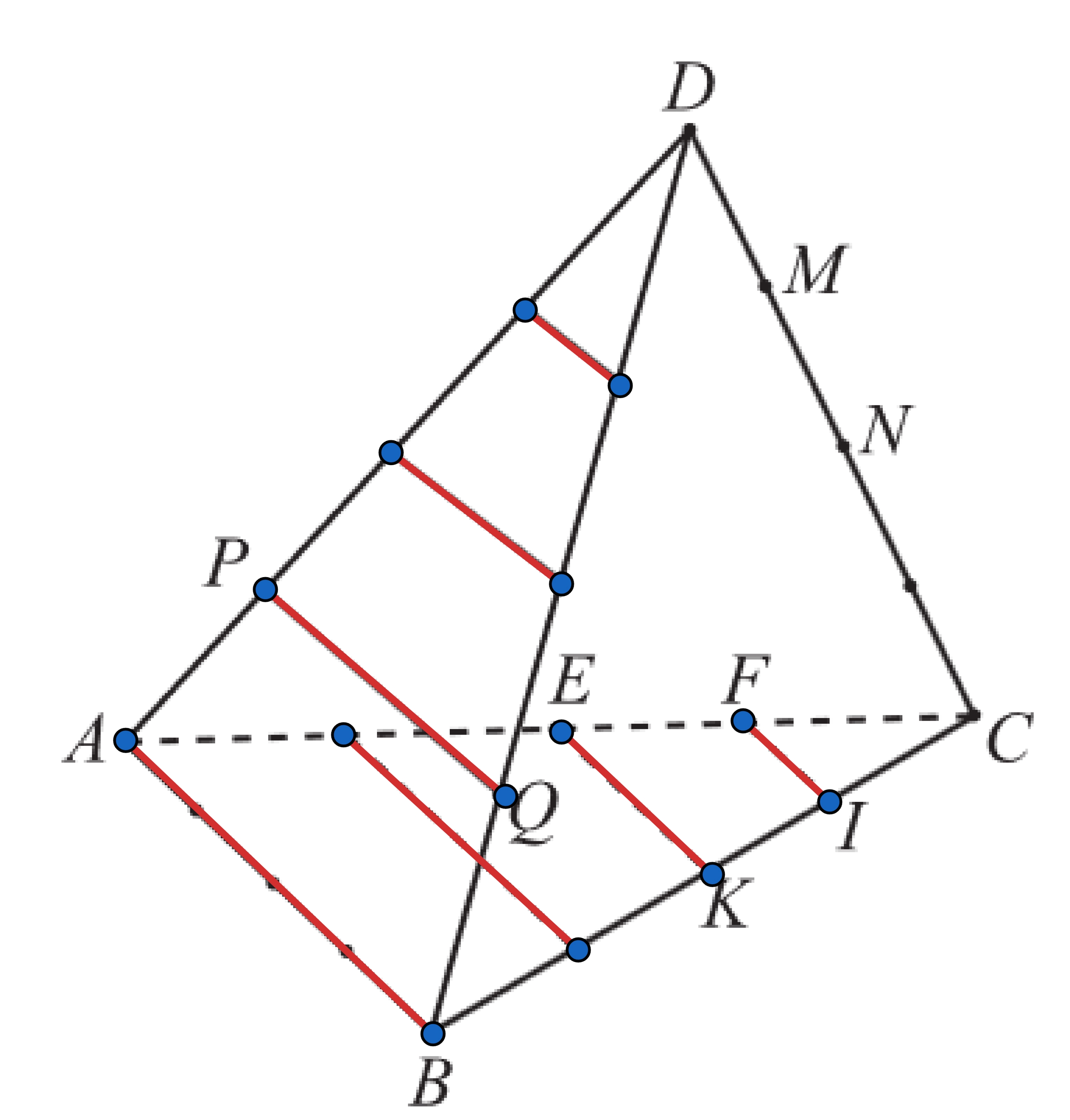 Trên mỗi cạnh của tứ diện, ta đánh dấu thêm 3 điểm chia đều cạnh tương ứng thành các phần bằng nhau. Gọi