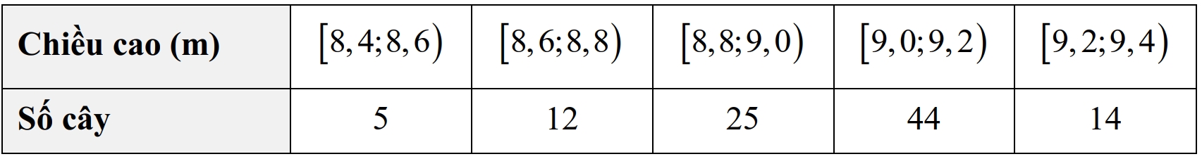 Câu 12 [695534]: Kết quả đo chiều cao của 100 cây dừa trồng sau 10 năm tại một vườn trái cây ở Bến Tre cho ở bảng sau: