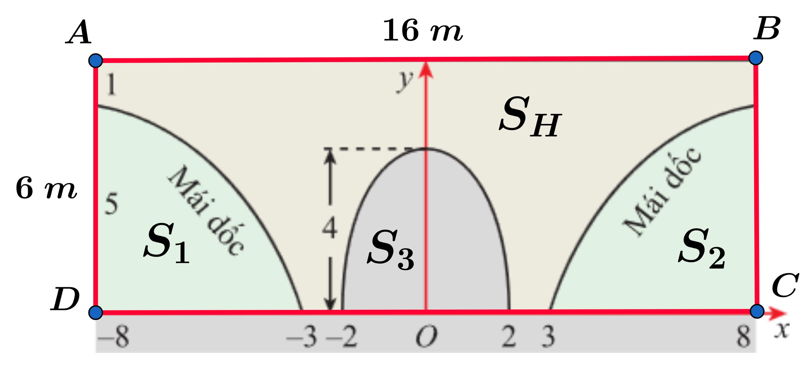 - Chiều cao của mái vòm bằng bao nhiêu mét (làm tròn kết quả đến hàng phần trăm)?