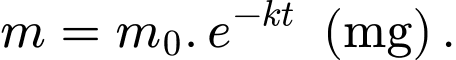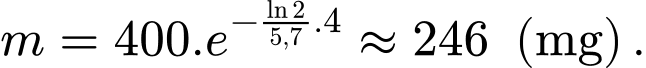 (miligam) là lượng caffeine ban đầu và m là lượng caffeine còn lại sau t giờ, k là hệ số suy giảm. Biết rằng thời gian để lượng caffeine giảm còn một nửa (thời gian bán rã) là 5,7 giờ. Một tách cà phê đậm đặc chứa 200 mg caffeine. Lúc 8 giờ sáng, nhà khoa học uống hai tách cà phê đậm đặc. Hỏi vào lúc 12 giờ trưa, lượng caffeine còn lại trong cơ thể là bao nhiêu miligam (làm tròn kết quả đến hàng đơn vị)?