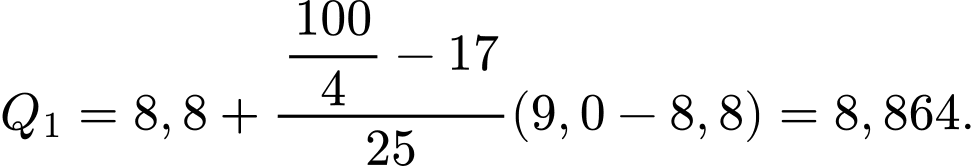Do đó, tứ phân vị thứ nhất của mẫu số liệu ghép nhóm là: