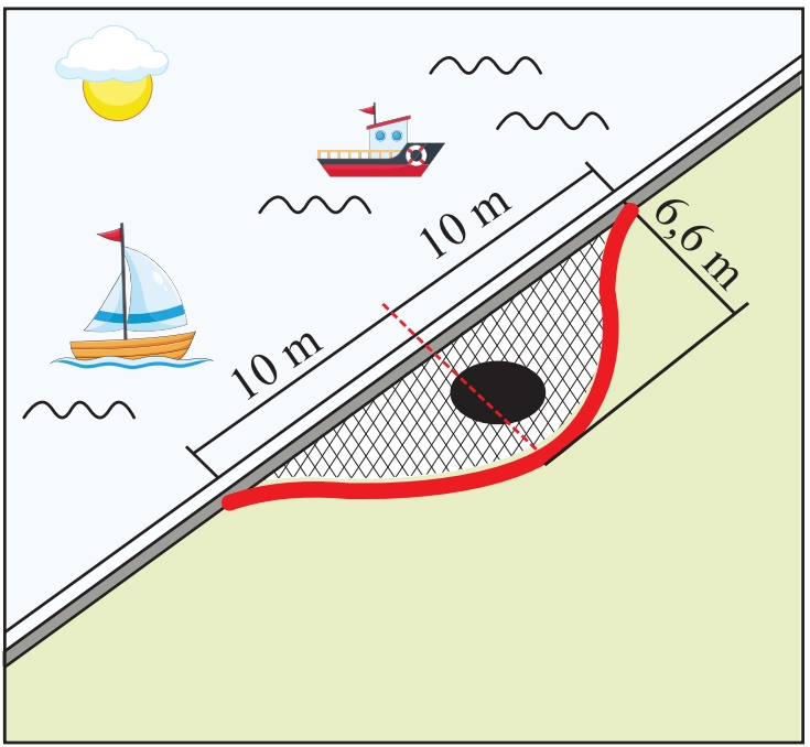 dài 20 mét chạy dọc theo bờ sông, do ảnh hưởng của nước lũ nên tuyến đường bị ảnh hưởng không thể đảm bảo để người dân đi lại. Các kỹ sư xây một đoạn đường mới rộng 60 cm thay thế đoạn đường cũ. Trên đoạn đường mới này, điểm có khoảng cách lớn nhất đến bờ sông là 6,6 mét. Trong hệ toạ độ