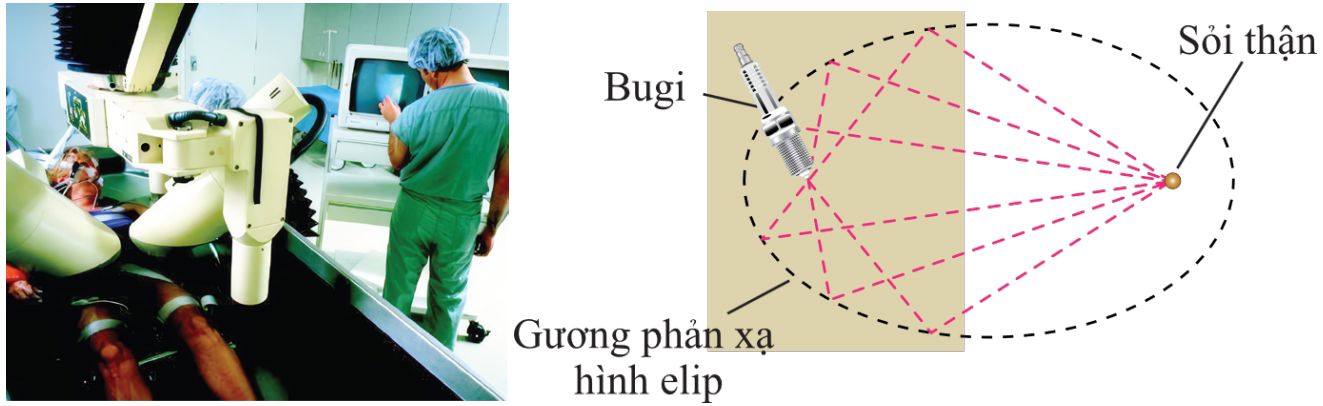 Từ dữ kiện: “Một bugi đặt tại một tiêu điểm của elip và viên sỏi nằm ở tiêu điểm còn lại” nên khoảng cách từ bugi đến viên sỏi bằng khoảng cách giữa hai tiêu điểm của hình elip tức bằng