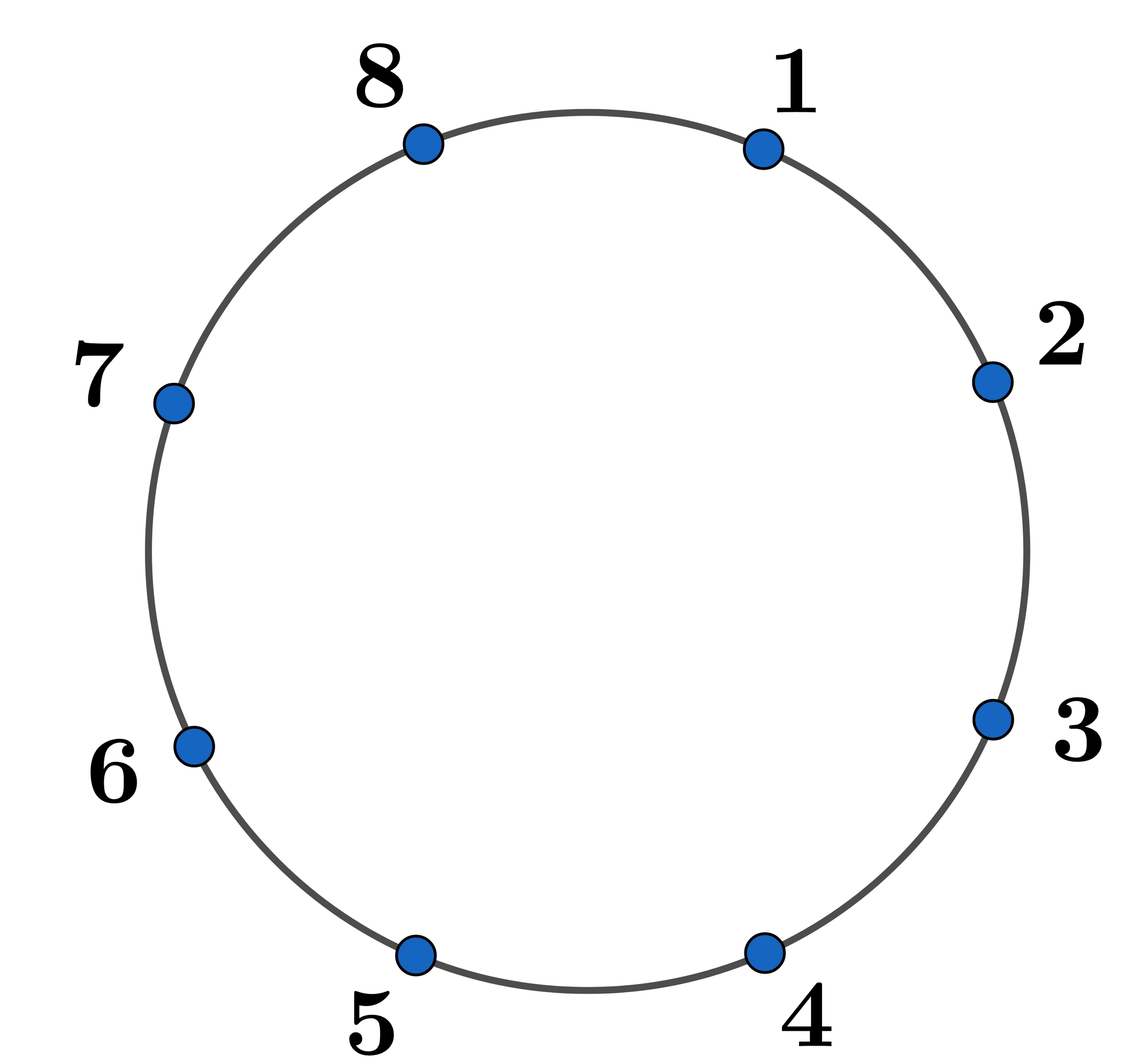 Quan sát hình vẽ, ta thấy nếu có 5 người đứng thì sẽ luôn có hai người đứng cạnh nhau, do đó để không có hai người đứng cạnh nhau thì số người đứng phải nhỏ hơn hoặc bằng 4. Ta đi tìm số cách sắp xếp số người đứng này vào trong bàn 8 người sao cho không có hai người đứng cạnh nhau.