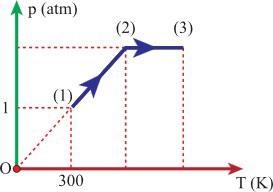 Câu 21 [1106262]: Một khối khí lí tưởng có thể tích 10 lít, nhiệt độ 27 °C, áp suất 1 atm và biến đổi qua hai quá trình như trên đồ thị (p, T):