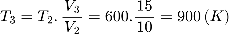 Quá trình biến đổi trạng thái khí từ (2) đến (3) là quá trình đẳng áp nên ta có phương trình quá trình đẳng áp: