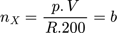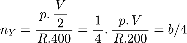 Câu 8 [1107298]: Trong sơ đồ dưới đây, thể tích của bình X gấp đôi thể tích của bình Y. Hệ thống chứa đầy khí lý tưởng và trạng thái ổn định được thiết lập với các bình được giữ ở nhiệt độ 200 K và 400 K. Có b mol khí trong bình X. Hỏi có bao nhiêu mol khí trong bình Y?