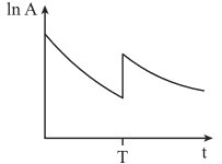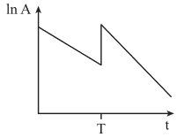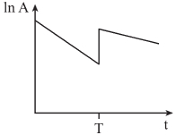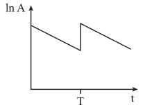 Câu 18 [1107305]: Tại thời điểm t = 0, một lượng khí phóng xạ được bơm vào một bình kín. Tại thời điểm T, một lượng khí cùng loại nữa được bơm thêm vào cùng bình đó. Đồ thị nào trong số các đồ thị dưới đây biểu diễn đúng nhất sự biến thiên logarit của độ phóng xạ A của khí theo thời gian t?