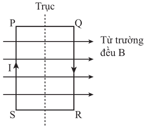 Câu 13 [1107304]: Một cuộn dây, gắn trên một trục, có mặt phẳng song song với các đường từ trường của một từ trường đồng nhất B, như hình vẽ. Một dòng điện I chạy qua cuộn dây. Phát biểu nào sau đây là đúng cho vị trí của cuộn dây như hình trên?