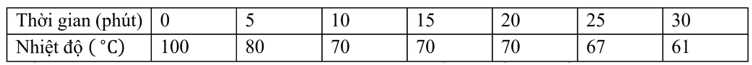 Câu 23 [1013442]: Bảng bên dưới ghi lại sự thay đổi nhiệt độ theo thời gian của một chất rắn kết tinh được làm nguội từ trạng thái lỏng.