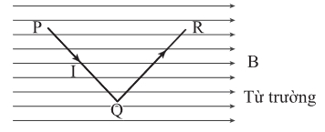 Câu 14 [1107315]: Hình vẽ bên cho thấy một dây dẫn PQR, có dòng điện I chạy qua và được đặt trong một từ trường đều. Dây dẫn PQR chịu tác dụng gì từ từ trường này?