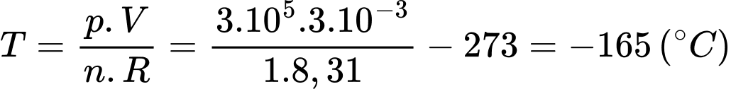 Câu 9 [1107314]: Một bình khí được lắp một van an toàn, van này sẽ xả khí khi áp suất bên trong bình đạt tới 2,0.106 Pa. Cho biết khối lượng khí tối đa mà bình có thể chứa ở 10 °C là 15 kg, vậy khối lượng tối đa ở 30 °C sẽ là bao nhiêu?