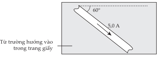Câu 14 [1107351]: Một đoạn dây dẫn dài 3,0 cm được đặt trong mặt phẳng trang giấy, nằm dọc theo một đường thẳng lệch 60° theo chiều kim đồng hồ so với trục x. Một từ trường có cảm ứng từ 0,040 T hướng vào trong trang giấy. Dây dẫn mang dòng điện 5,0 A.