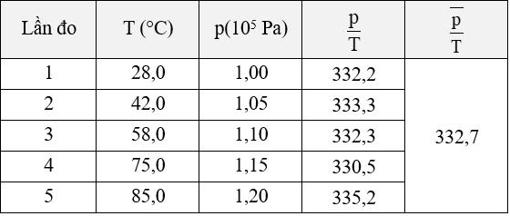 c) Sai: Từ bảng giá trị, ta thấy giá trị trung bình của tỉ số giữa áp suất và nhiệt độ tuyệt đối của khí trong bình