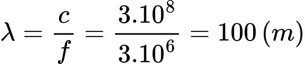Câu 23 [862589]: Một sóng điện từ có tần số 3 MHz. Tốc độ lan truyền trong chân không là c = 3.108 m/s. Bước sóng của sóng điện từ này là bao nhiêu m?