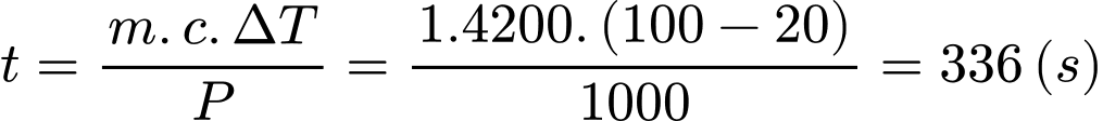Nhiệt lượng cung cấp cho nước xác định bằng công thức:
