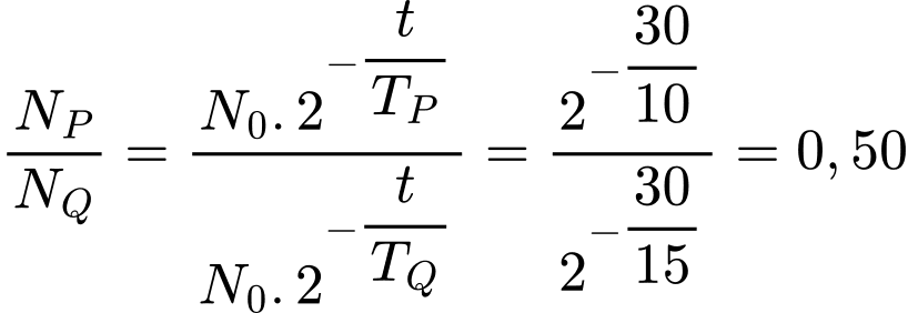 Sau 30 phút, tỉ số giữa số nguyên tử của P và số nguyên tử của Q sẽ là: