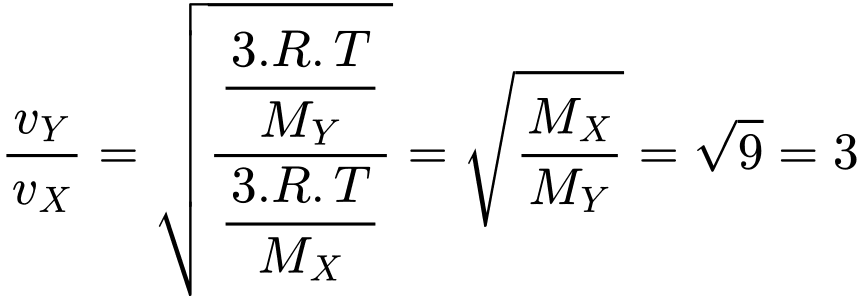 Câu 8 [1107358]: Hai loại khí X và Y được duy trì ở cùng một nhiệt độ. Khối lượng phân tử của X gấp 9 lần của Y. Tỷ số giữa tốc độ căn quân phương của các phân tử khí Y so với các phân tử khí X là bao nhiêu?