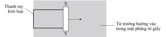 Câu 15 [1107402]: Một thanh kim loại XY đang chuyển động sang phải trên một đường ray kim loại, vuông góc với từ trường như hình bên dưới.