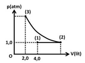 Quá trình đầu tiên là dãn đẳng nhiệt, quá trình tiếp theo là nén đẳng áp, thể tích ban đầu và sau khi kết thúc quá trình biến đổi là bằng nhau