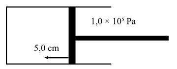 Câu 4 [1107404]: Một lượng khí lý tưởng bên trong một xilanh bị nén bởi một pit-tông như hình bên dưới mà không làm thay đổi áp suất bên trong ống. Xilanh có diện tích tiết diện là 2,0.10–4 m2.