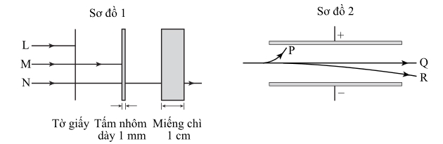 Trong sơ đồ 1: M xuyên qua tờ giấy nhưng không thể xuyên qua tấm nhôm nên đây là bức xạ beta