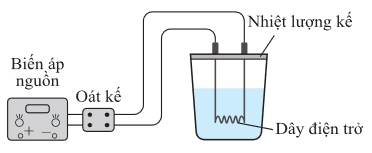 Câu 19 [1107406]: Để xác định nhiệt nóng chảy riêng của nước đá, nhóm học sinh tiến hành thí nghiệm theo sơ đồ nguyên lí như hình bên. Dòng điện làm nóng dây nung trong một nhiệt lượng kế và làm nước đá nóng chảy. Lượng nước thu được sau khi toàn bộ nước đá nóng chảy được đem đi cân thì thấy nó có khối lượng 20 g. Công suất điện tiêu thụ được xác định bằng oát kế là 44 W. Thời gian đun được xác định bằng đồng hồ là 2,5 phút. Bỏ qua sự trao đổi nhiệt với môi trường xung quanh, bỏ qua nhiệt dung của bình nhiệt lượng kế, bỏ qua toả nhiệt trên các dây dẫn.