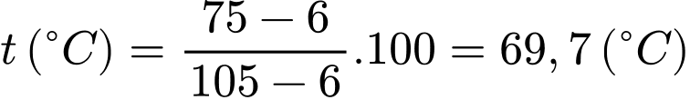 Ở nhiệt độ 75 °C theo nhiệt kế bị sai thì nhiệt độ chính xác là: