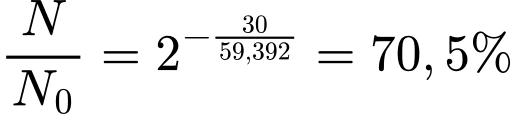 Sau 30 ngày làm việc tỷ lệ số hạt nhân của đồng vị phóng xạ còn lại khoảng