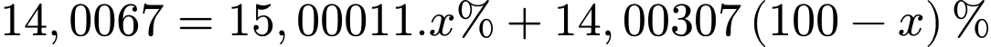 Câu 17 [709795]: Nitrogen tự nhiên có khối lượng nguyên tử là 14,0067 amu gồm 2 đồng vị là và có khối lượng nguyên tử lần lượt là 14,00307 amu và 15,00011 amu. Phần trăm của trong nitrogen tự nhiên là
