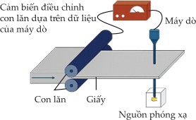 Câu 21 [1106224]: Trong các nhà máy sản xuất giấy chất lượng cao không thể thiếu một thiết bị đo định lượng giấy, hay còn gọi là đo độ dày gọi là thiết bị QCS đặt trên dây chuyền sản xuất giấy. Thiết bị này sử dụng nguồn phóng xạ trong hệ thống để theo dõi độ dày của giấy như sơ đồ bên dưới. Bức xạ xuyên qua giấy được phát hiện bởi máy dò, bằng cách đo tỷ lệ các hạt phóng xạ đi qua giấy, máy tính sẽ tính toán chính xác độ dày của nó và kiểm soát độ dày đó theo các mức tiêu chuẩn được thiết lập ban đầu.