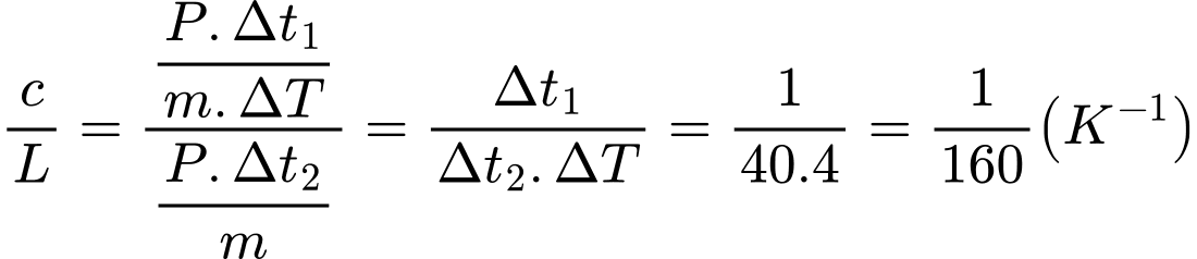 Câu 4 [1106218]: Trong một thí nghiệm đun nóng, năng lượng được cung cấp với tốc độ không đổi (công suất ổn định) cho một chất lỏng đựng trong một chiếc cốc có nhiệt dung không đáng kể. Nhiệt độ của chất lỏng tăng 4,0 K mỗi phút ngay trước khi nó bắt đầu sôi. Sau 40 phút, toàn bộ chất lỏng đã sôi và bay hơi hết. Đối với chất lỏng này, tỉ số nhiệt dung riêng và nhiệt hóa hơi riêng là bao nhiêu?