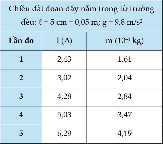 a) Đúng: Nếu không hiệu chỉnh cân về số 0, sau khi đặt nam châm lên bàn cân, cân chỉ khối lượng m1 (kg). Cho dòng điện chạy qua đoạn dây, lúc này số chỉ của cân là m2 (kg). Kết quả ta cần ghi lại chính là độ tăng khối lượng của cân: