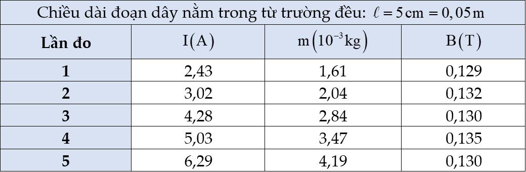 Kết quả các lần đo cho ta cảm ứng từ của nam châm gần đúng bằng nhau và bằng 0,13T