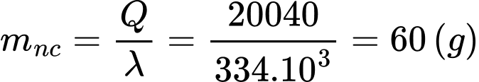 Khối lượng khối nước đá ban đầu là