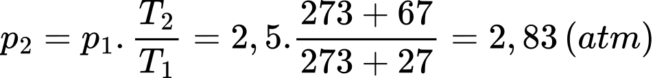 , áp suất 0,8 atm. Để áp suất khối khí này tăng đến 1,2 atm thì nhiệt độ của khối khí này bằng bao nhiêu? Coi như thể tích bình thay đổi không đáng kể.