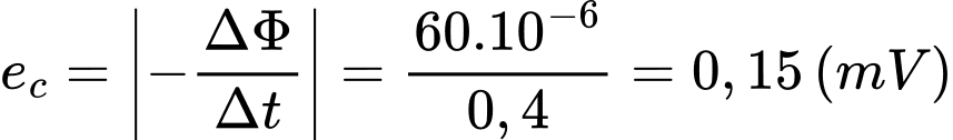 Cường độ dòng điện xuất hiện trong khung dây có độ lớn bằng