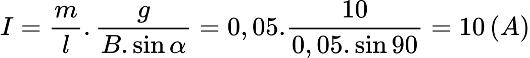 Câu 39 [820936]: Treo đoạn dây dẫn cứng MN, khối lượng của một đơn vị chiều dài là 0,05 kg/m bằng hai dây mảnh, nhẹ sao cho dây dẫn nằm ngang. Cảm ứng từ có chiều như hình vẽ, có độ lớn B = 0,05 T. Biết lực căng dây bằng 0 N. Lấy g = 10 m/s².
