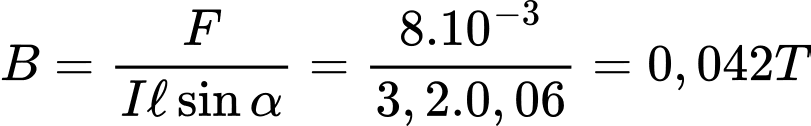 Câu 46 [820950]: Một đoạn dây dẫn dài 10 cm đặt trong từ trường đều và hợp với đường sức từ một góc 60°. Cường độ dòng điện qua dây dẫn là 1,20 A, lực từ tác dụng lên đoạn dây có độ lớn 5 mN. Bỏ qua ảnh hưởng của từ trường Trái Đất tác dụng lên đoạn dây. Tính độ lớn cảm ứng từ của từ trường theo đơn vị T? (làm tròn kết quả đến chữ số hàng phần trăm).