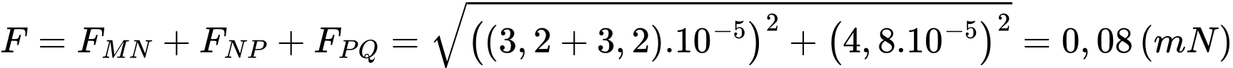 Theo quy tắc tổng hợp vecto ta có độ lớn của hợp lực từ tác dụng lên phần dây dẫn bằng