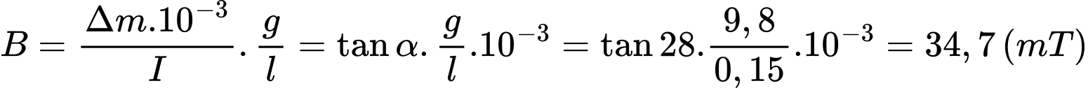 Câu 43 [820942]: Bạn Trang đã tiến hành thí nghiệm như hình để xác định cảm ứng từ B trong lòng của nam châm. Nam châm được đặt trên cân điện tử. PQ là một thanh cứng thẳng dẫn điện, đặt cố định nằm ngang, vuông góc với từ trường giữa các cực của nam châm và được nối với nguồn điện. Chiều dài của nam châm l = 15 cm, coi từ trường trong lòng nam châm là đều, lực từ tác dụng lên phần thanh PQ ở bên ngoài nam châm là không đáng kể, tăng dần cường độ dòng điện I chạy trong dây PQ và ghi lại số chỉ m của cân, bạn Trang vẽ được đồ thị m theo I như hình vẽ. Dùng thước đo góc, bạn xác định được α = 280; lấy g = 9,8m/s2.