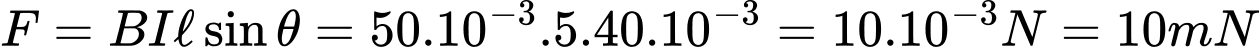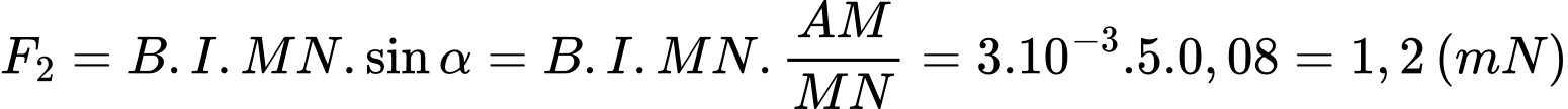 Lực từ tác dụng lên đoạn dây MN có độ lớn