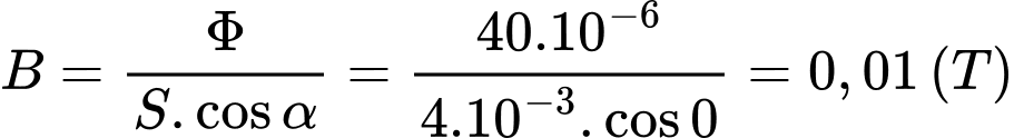 Cho một khung dây có điện tích S đặt trong từ trường đều, cảm ứng từ, α là góc hợp bởi vecto cảm ứng từ và pháp tuyến của mặt phẳng khung dây. Công thức tính từ thông qua S là
