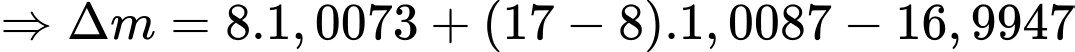 có khối lượng 16,9947 amu. Biết khối lượng của proton và neutron lần lượt là 1,0073 amu và 1,0087 amu. Độ hụt khối của