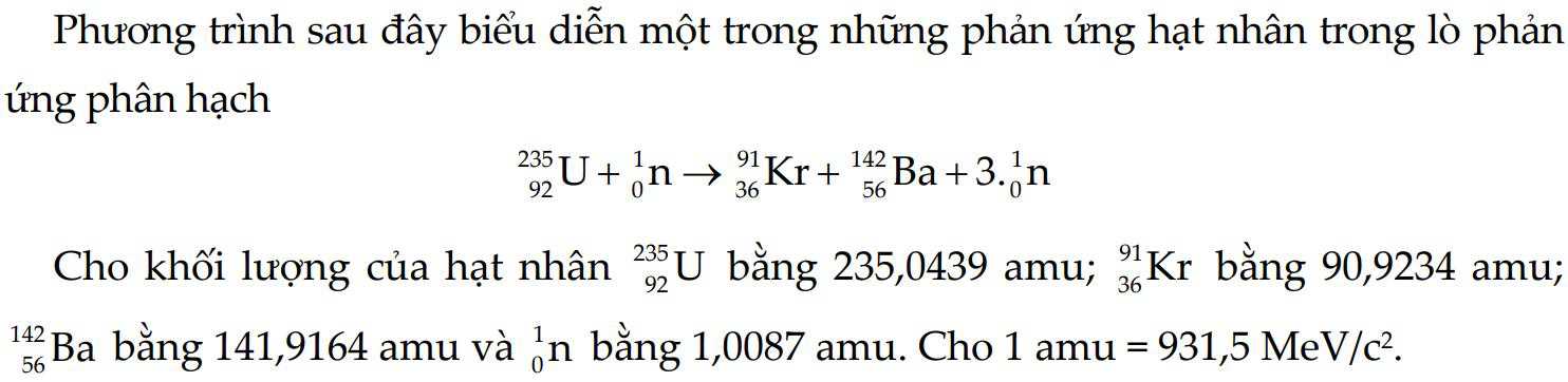 kèm theo giải phóng 3 hạt neutron mới. Cho biết khối lượng nguyên tử của