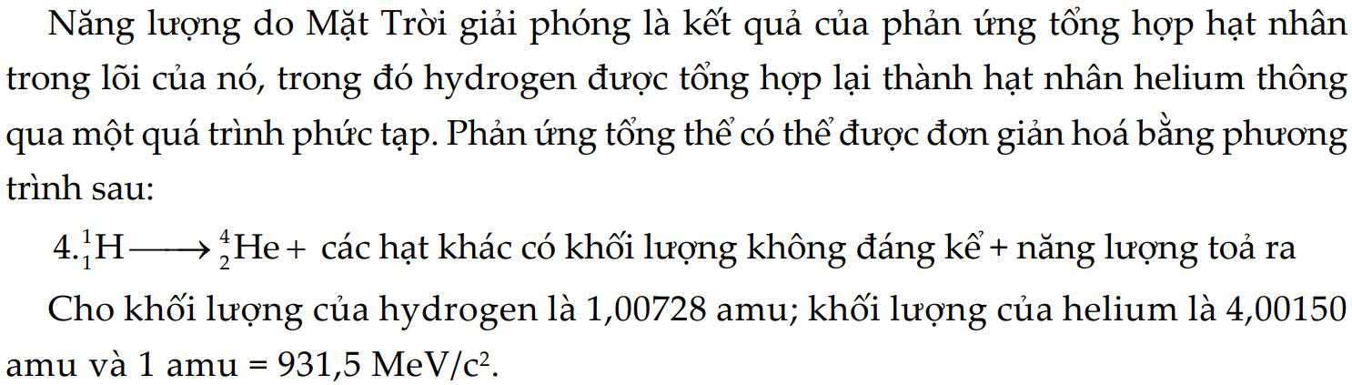 Năng lượng giải phóng trong mỗi phản ứng tổng hợp hạt nhân của Mặt Trời là