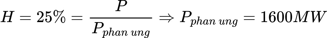 Công suất của lò phản ứng là