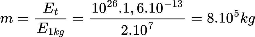 Câu 12 [305034]: Năng lương tỏa ra trong quá trình phân hạch hạt nhân của một kg 23592U là 1026 MeV. Phải đốt một lượng than đá bao nhiêu để có một nhiệt lượng như thế năng suất toả nhiệt của than là 2.107 J/kg.